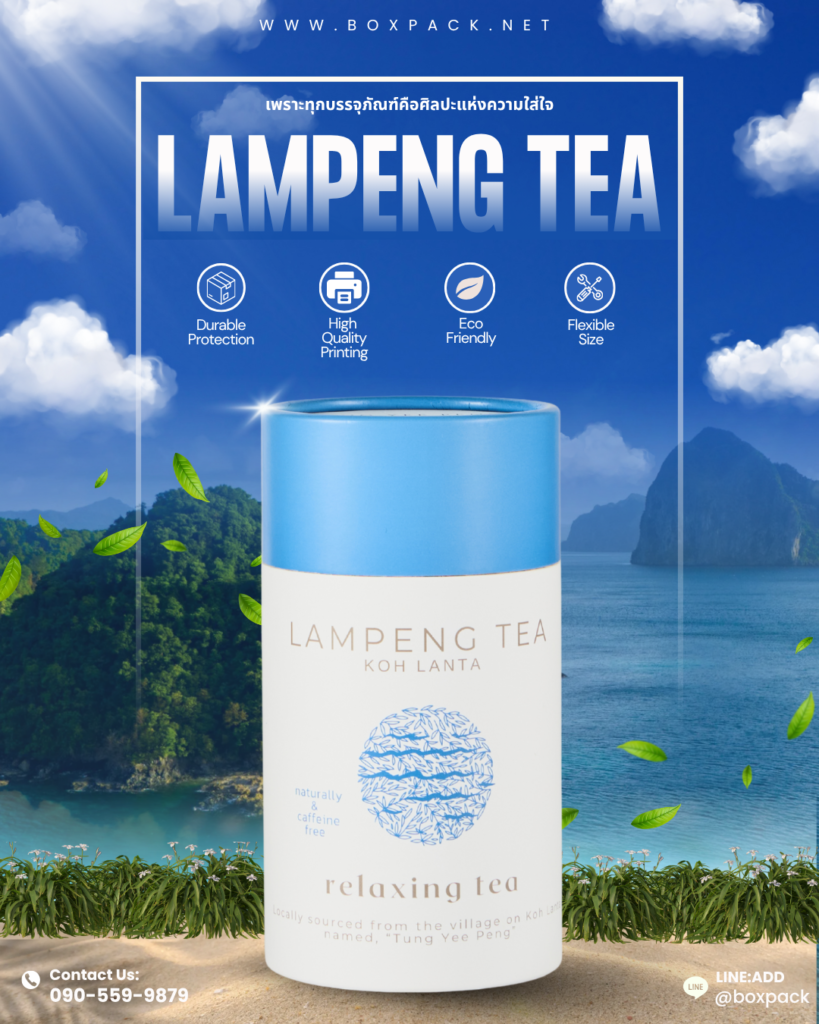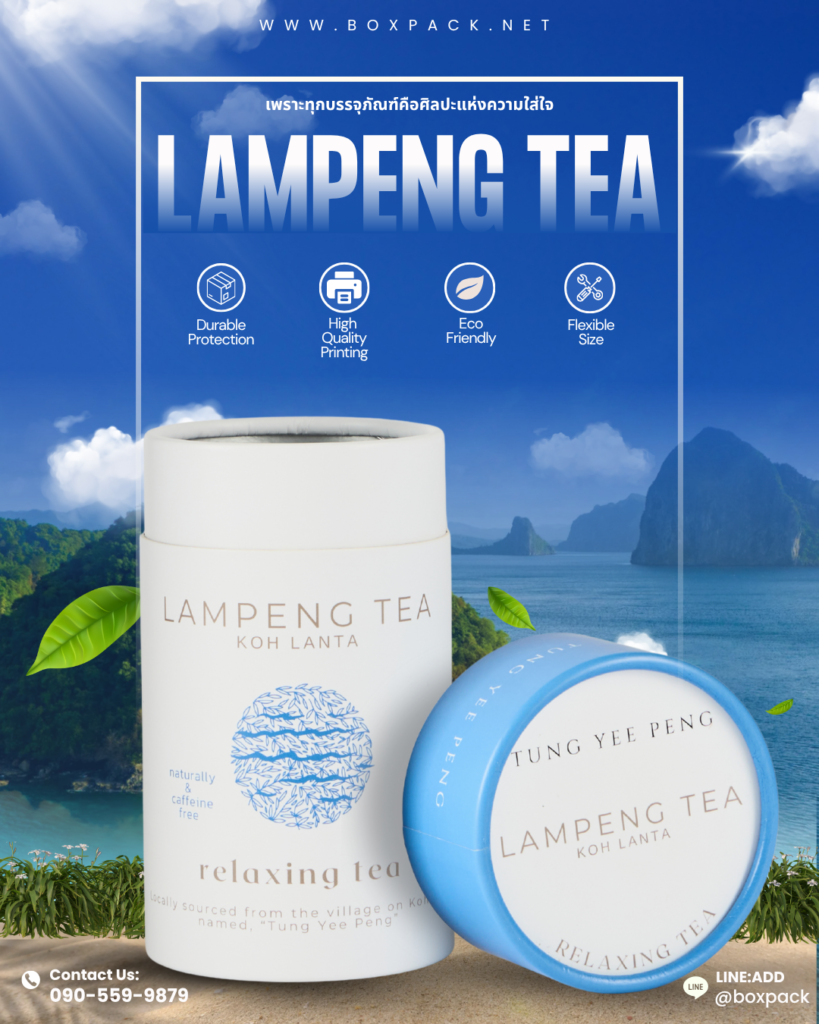 อย่างกล่องทรงกระบอกชา ” LAMPENG TEA ” ที่เลือกใช้กล่องที่ใส่ใจสิ่งแวดล้อม เริ่มต้นในวันนี้ เพื่ออนาคตของโลกที่ดีกว่า 🌍
